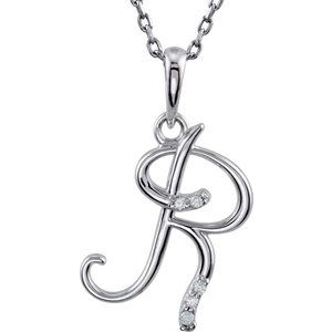 Sterling Silver .03 CTW Diamond Initial R 18" Necklace