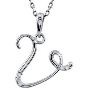 Sterling Silver .03 CTW Diamond Initial V 18" Necklace