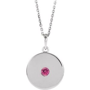 Sterling Silver Pink Tourmaline Disc 16-18" Necklace