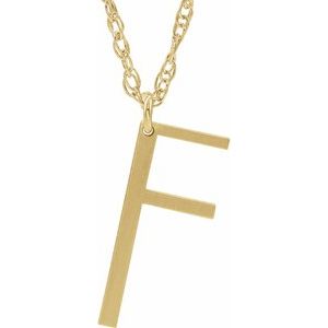 14K Yellow Gold-Plated Sterling Silver Block Initial F 16-18" Necklace with Brush Finish