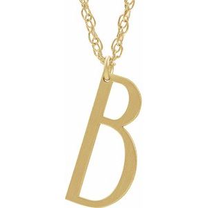 14K Yellow Gold-Plated Sterling Silver Block Initial B 16-18" Necklace with Brush Finish