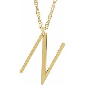 14K Yellow Gold-Plated Sterling Silver Block Initial N 16-18" Necklace with Brush Finish