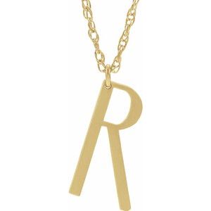 14K Yellow Gold-Plated Sterling Silver Block Initial R 16-18" Necklace with Brush Finish