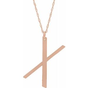 14K Rose Gold-Plated Sterling Silver Block Initial X 16-18" Necklace with Brush Finish