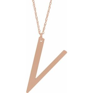 14K Rose Gold-Plated Sterling Silver Block Initial V 16-18" Necklace with Brush Finish