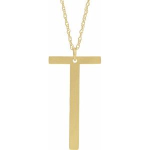 14K Yellow Gold-Plated Sterling Silver Block Initial T 16-18" Necklace with Brush Finish