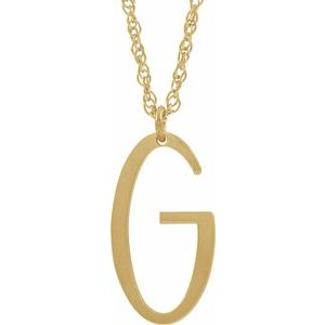 14K Yellow Gold-Plated Sterling Silver Block Initial G 16-18" Necklace with Brush Finish