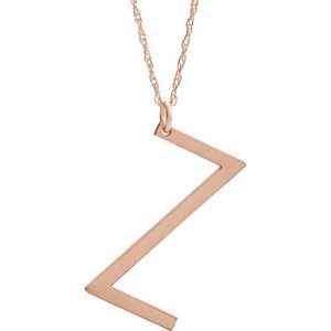 14K Rose Gold-Plated Sterling Silver Block Initial Z 16-18" Necklace with Brush Finish