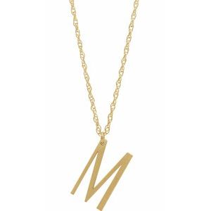 14K Yellow Gold-Plated Sterling Silver Block Initial M 16-18" Necklace with Brush Finish