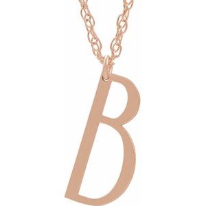 14K Rose Gold-Plated Sterling Silver Block Initial B 16-18" Necklace with Brush Finish