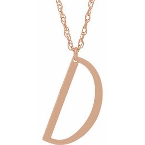 14K Rose Gold-Plated Sterling Silver Block Initial D 16-18" Necklace with Brush Finish