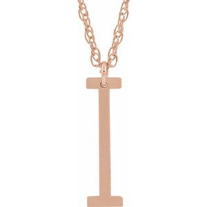 14K Rose Gold-Plated Sterling Silver Block Initial I 16-18" Necklace with Brush Finish