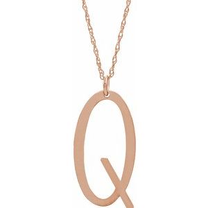 14K Rose Gold-Plated Sterling Silver Block Initial Q 16-18" Necklace with Brush Finish