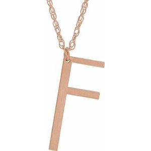 14K Rose Gold-Plated Sterling Silver Block Initial F 16-18" Necklace with Brush Finish