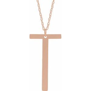 14K Rose Gold-Plated Sterling Silver Block Initial T 16-18" Necklace with Brush Finish