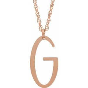 14K Rose Gold-Plated Sterling Silver Block Initial G 16-18" Necklace with Brush Finish