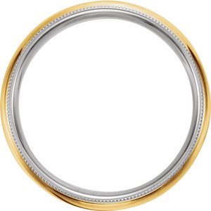 Bande rainurée en platine et jaune 18 carats et platine de 6 mm avec grain de grain 11,5