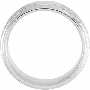 51542 / 18K blanc / 7,5 / 8 mm / poli / demi-rond bande milgrain confortable avec finition marteau