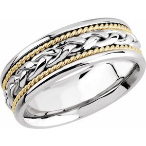 Bande tissée 18K blanc / jaune 8 mm taille 9,5