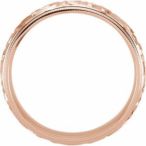 50061 / 14K Rose / 8/6 mm / Bande de grain de grain polie / Design-Engraved