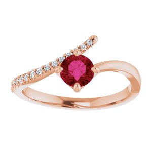 71965 / Bague / Ensemble / 14K Rose / Rubis / Rond / 5 Mm / I1, GH :: 1/10 Ctw / Polished / Bypass Ring
