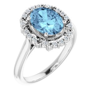 71977 / Set / 14K Blanc / Aigue-Marine / Ovale / 9X7 Mm / Poli / Véritable Aigue-Marine Et Bague Diamant 1/6 Ct