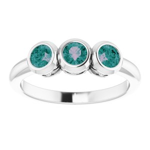 71996 / Ensemble / 14K blanc / Alexandrite authentique / 3,5 mm / poli / bague à trois pierres