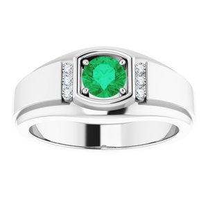 9856 / Ensemble / 14K blanc / émeraude véritable / rond / 5,5 mm / poli / émeraude véritable et bague en diamant 0,08 ct