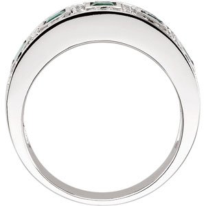 62801 / 14K White / 03.00 Mm / Polished / Emerald And 3/8 Ctw Dia Ring