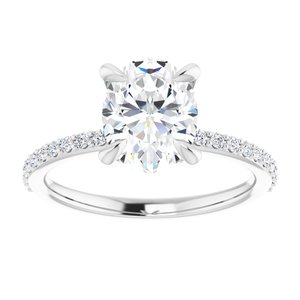 653380 / Engagement Ring / Set / 14K White / Oval / 9 X 7 Mm / Charles & Colvard Forever One Created Moissanite / Colorless-Def / Si2-Si3, G-H / Polished / Moissanite And Diamond Engagement Ring