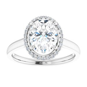 653383 / Set / 14K White / Charles & Colvard Forever One Created / Colorless-Def Moissanite / Oval / 9 X 7 Mm / Polished / Moissanite And 1/10 Ctw Diamond Engagement Ring