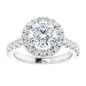 653384 / Set / 14K White / Charles & Colvard Forever One Created / Colorless-Def Moissanite / Round / 7.5 Mm / Polished / Moissanite And 3/4 Ctw Diamond Engagement Ring