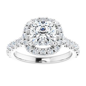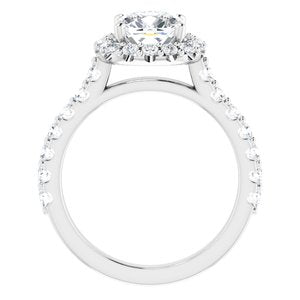 653384 / Set / 14K White / Charles & Colvard Forever One Created / Near Colorless-Ghi Moissanite / Cushion / 7 X 7 Mm / Polished / Moissanite And 3/4 Ctw Diamond Engagement Ring