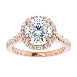 653385 / Set / 14K Rose / Charles & Colvard Forever One Created / Near Colorless-Ghi Moissanite / Round / 8 Mm / Polished / Moissanite And 1/3 Ctw Diamond Engagement Ring