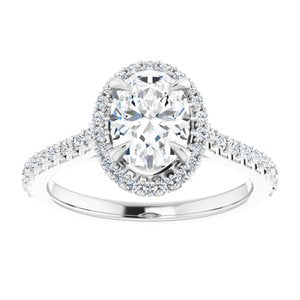 653385 / Set / 14K White / Charles & Colvard Forever One Created / Colorless-Def Moissanite / Oval / 8 X 6 Mm / Polished / Moissanite And 1/3 Ctw Diamond Engagement Ring