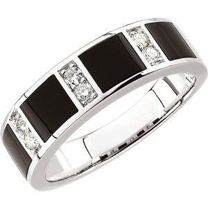 65518 / 14K White / Size 11.00 / Polished / 1/4 Ct Tw Onyx/Diamond Band