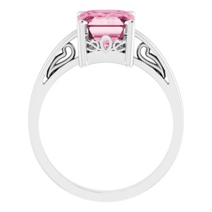 70534 / Ring / Emerald / Set / Pink Tourmaline / 14K White / 9 X 7 Mm / 4-Prong / Polished / Solitaire Scroll Setting Ring