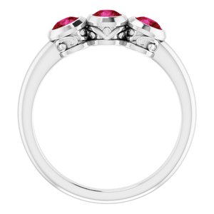 71996 / Set / 14K White / Genuine Ruby / 4 Mm / Polished / Three-Stone Ring